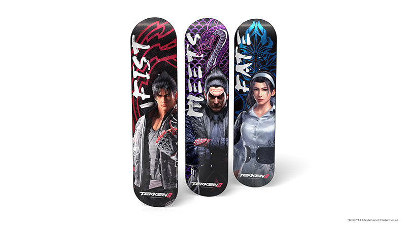 Pay homage to the Mishima bloodline with this exclusive TEKKEN 8 skate deck set. Whether you’re hitting the streets or displaying them as art, these decks are a must-have for any TEKKEN collector.